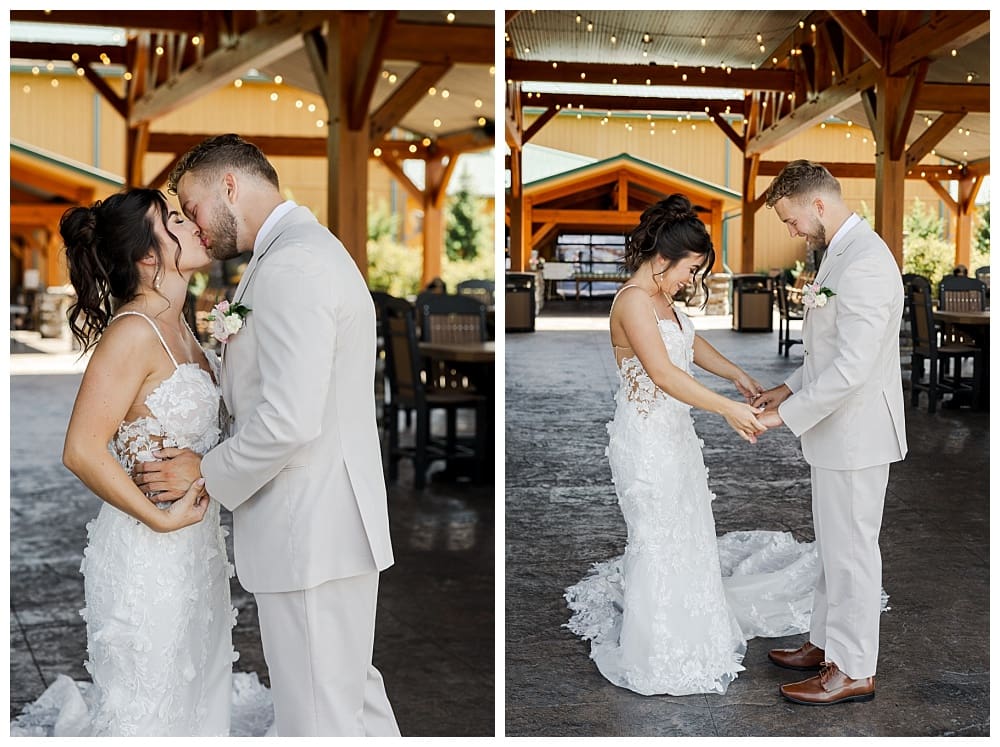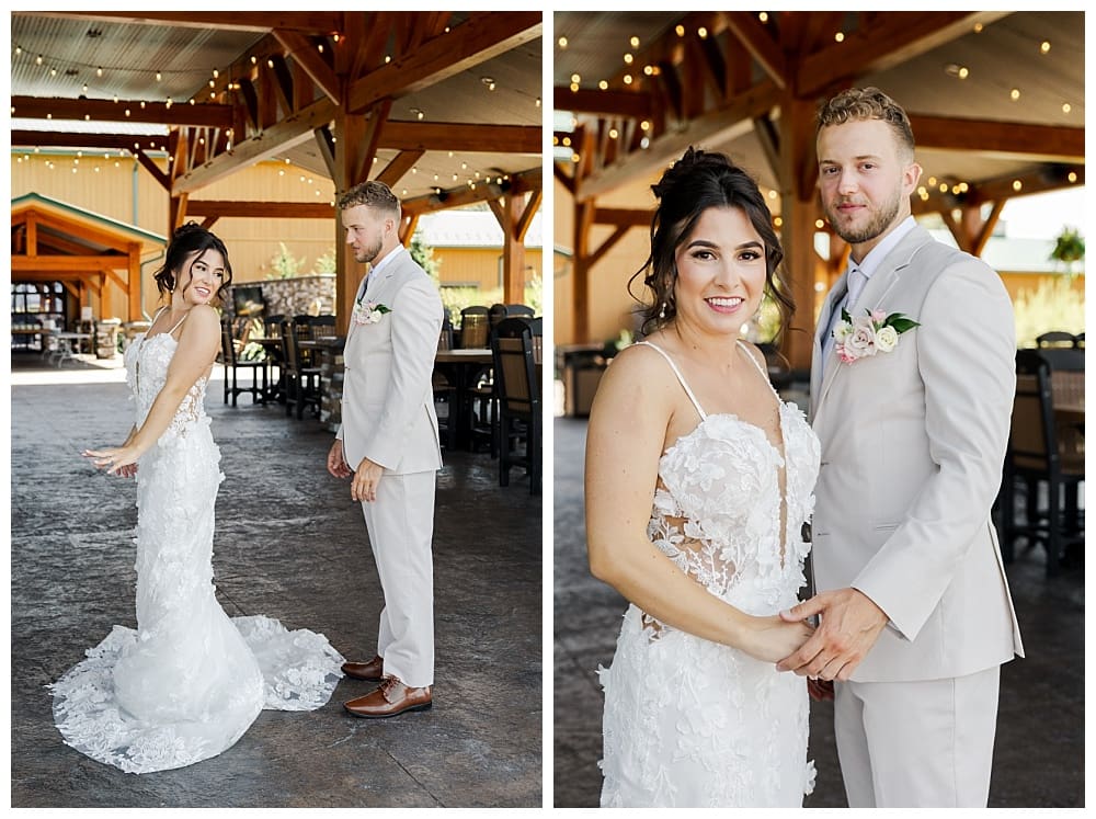 Jade and her mom planned every detail of this wedding at The Roost with so much love. Everywhere you looked, there was something personalized. From custom cornhole boards and a giant tic-tac-toe game to personalized napkin ribbons with guest names printed on them, no corner was left untouched.