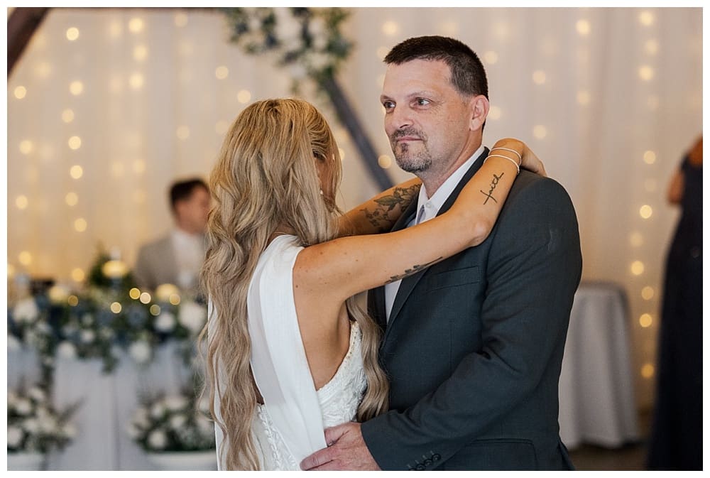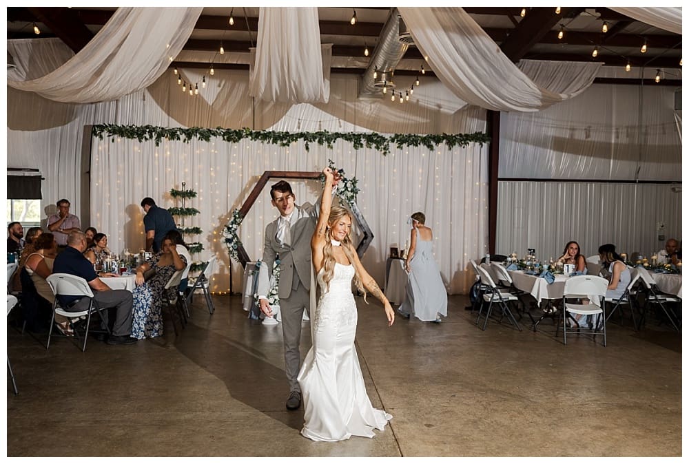 From there, it was off to their beautiful Big Run Event Center wedding reception. Guests were already arriving, ready to celebrate the new Mr. and Mrs., and the space looked amazing.