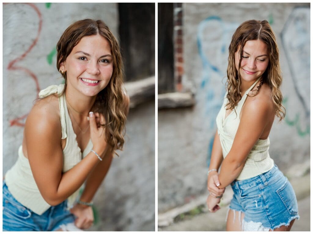Meeca’s senior session was full of laughter, sunshine, and the kind of memories that make you smile every time you think about them. We started in downtown DuBois, surrounded by colorful buildings, brick sidewalks, and a little bit of small-town charm in every corner. Meeca’s bright personality shined through in every shot, and her natural energy made the whole evening a joy.