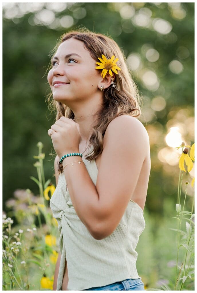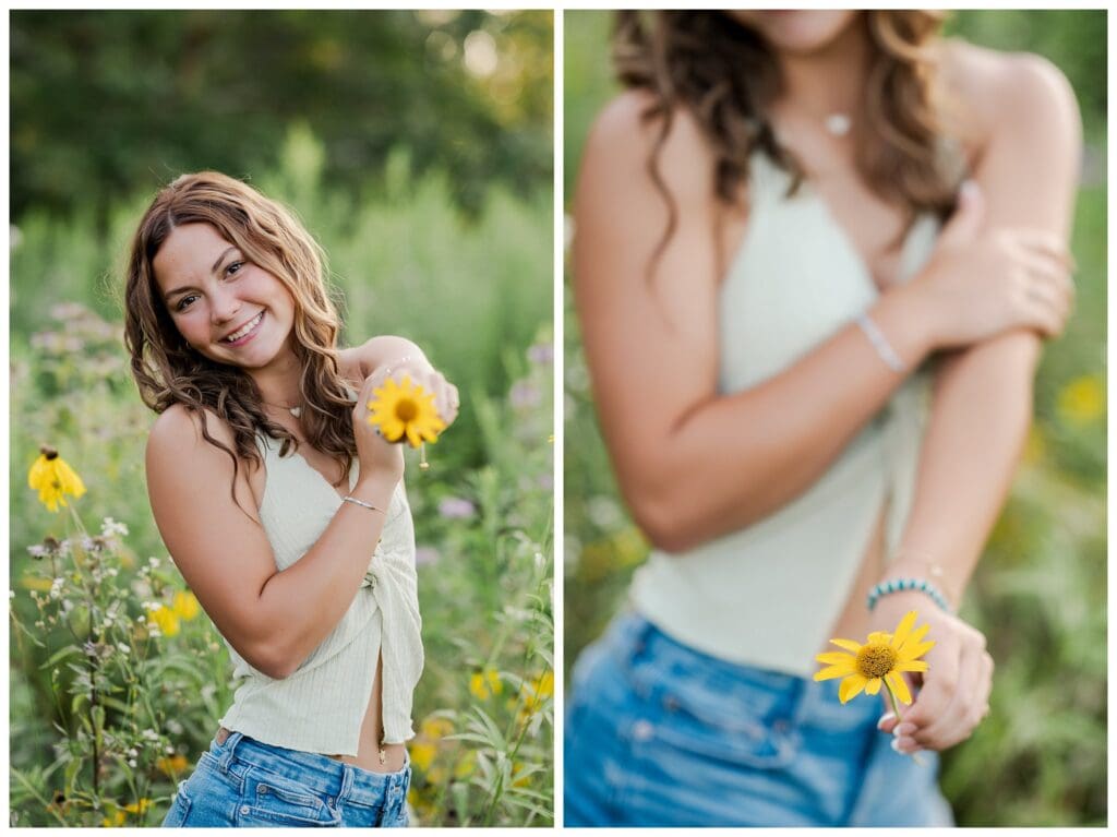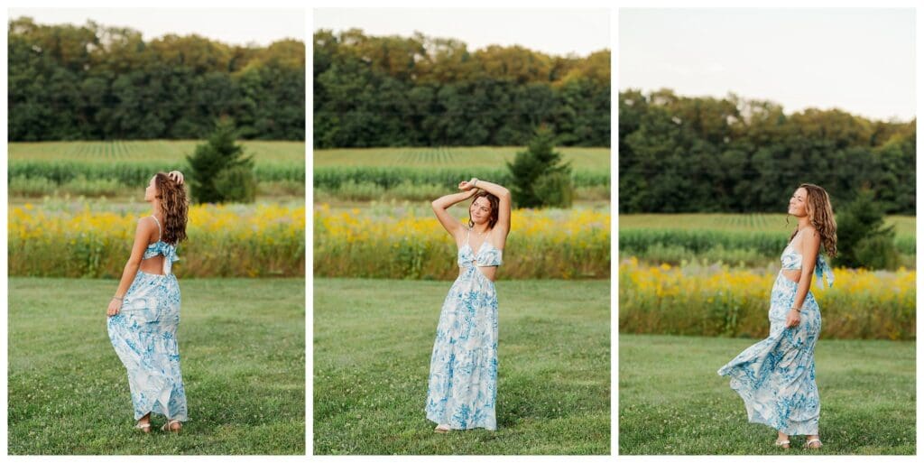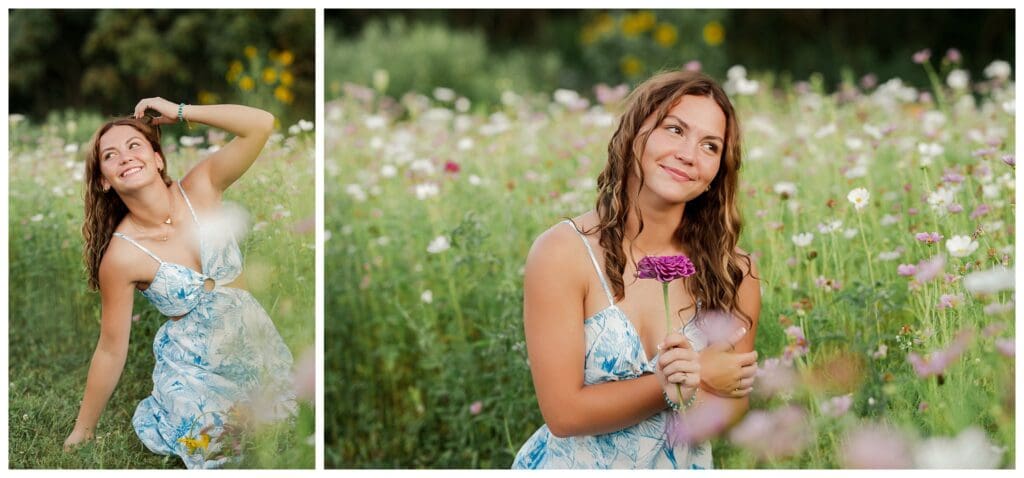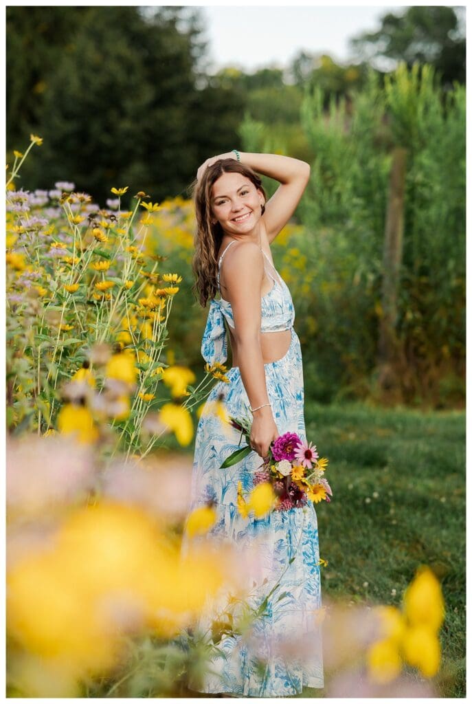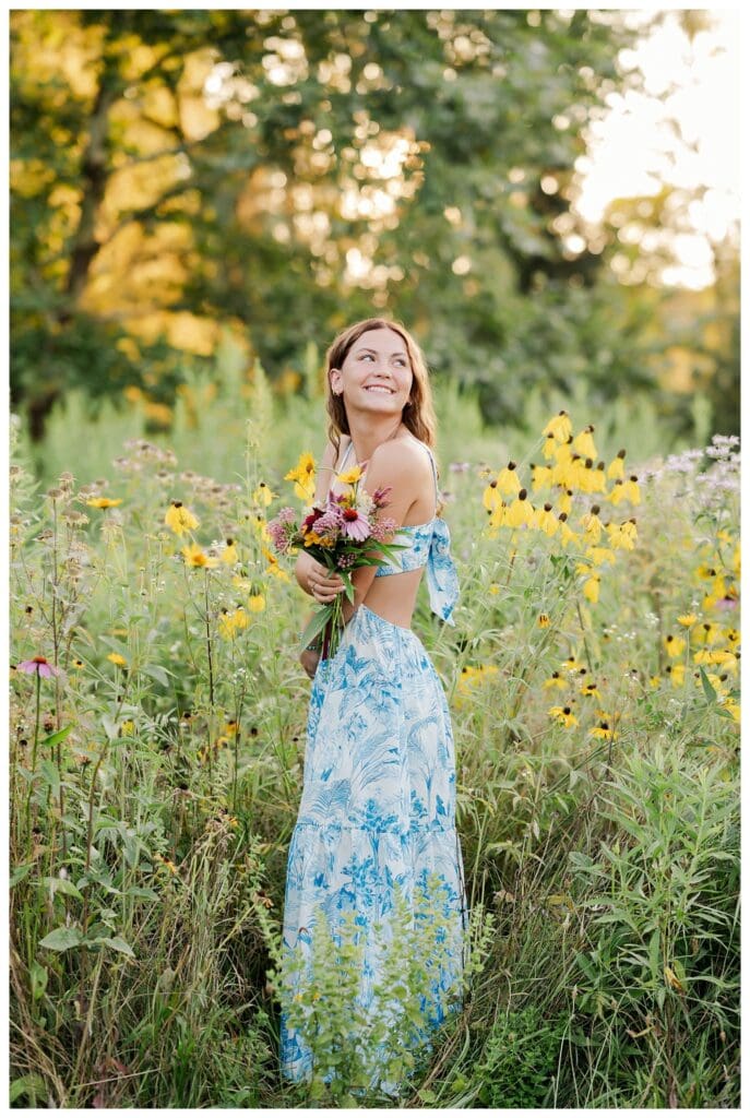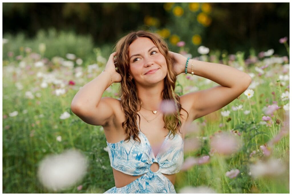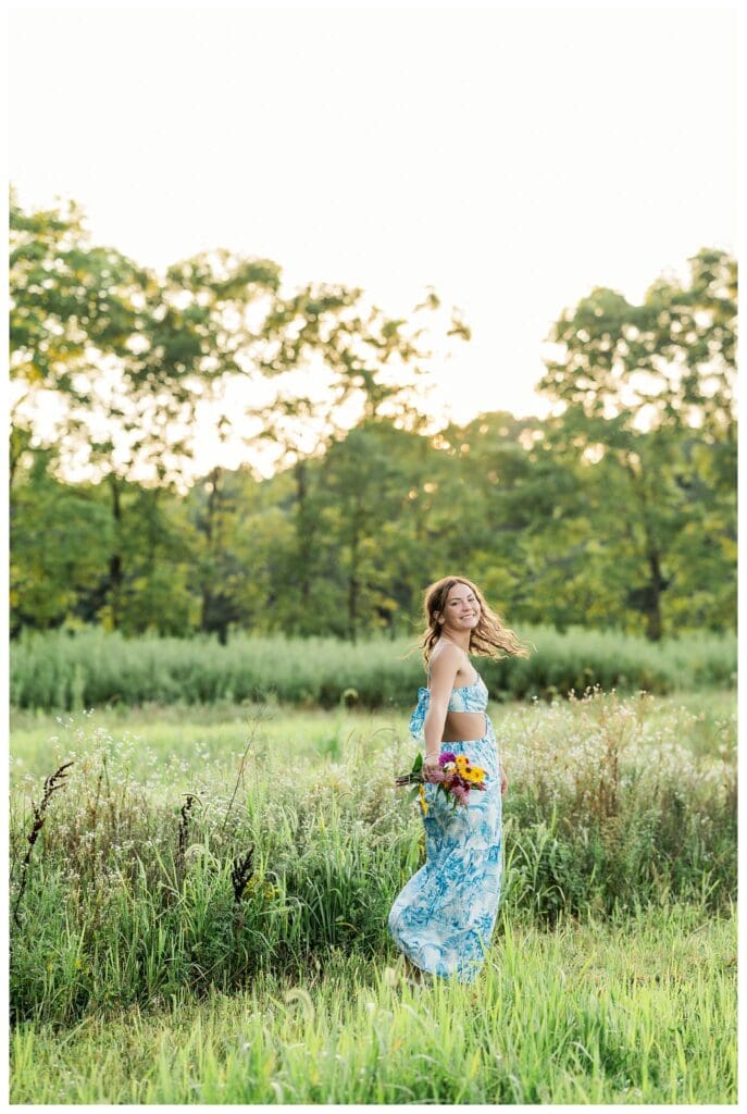 After downtown, we headed to Meadow and Twilight Farm. The golden light over the flowers was absolutely perfect. Meeca looked stunning in every setting, whether she was walking through the blooms or running through the fields. Her confidence and easy smile made every shot feel effortless.