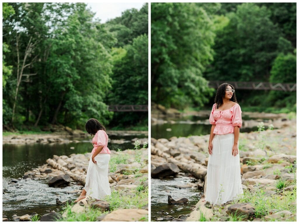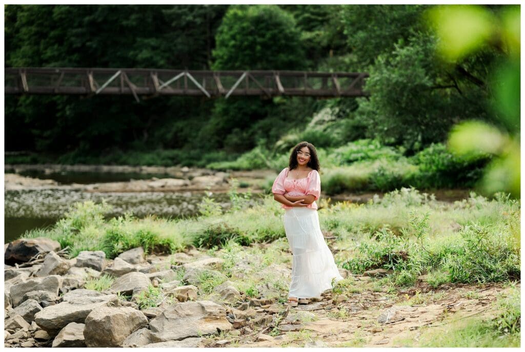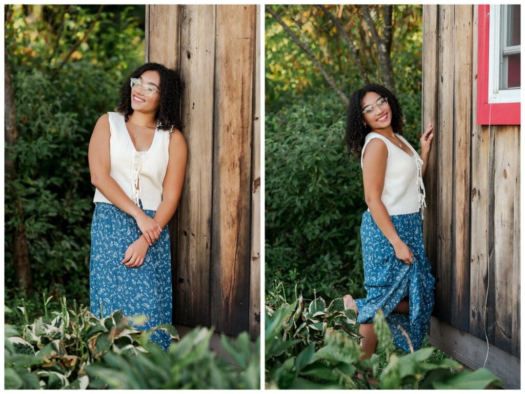 We started at Walter Dick Memorial Park, where the water was cold and rocks were too slippery, but it sure made a beautiful backdrop! From there, we headed to Meadow and Twilight Farm, a favorite spot for seniors with its fields and rustic charm. Both locations enhanced Raven’s natural beauty and sweet smile.