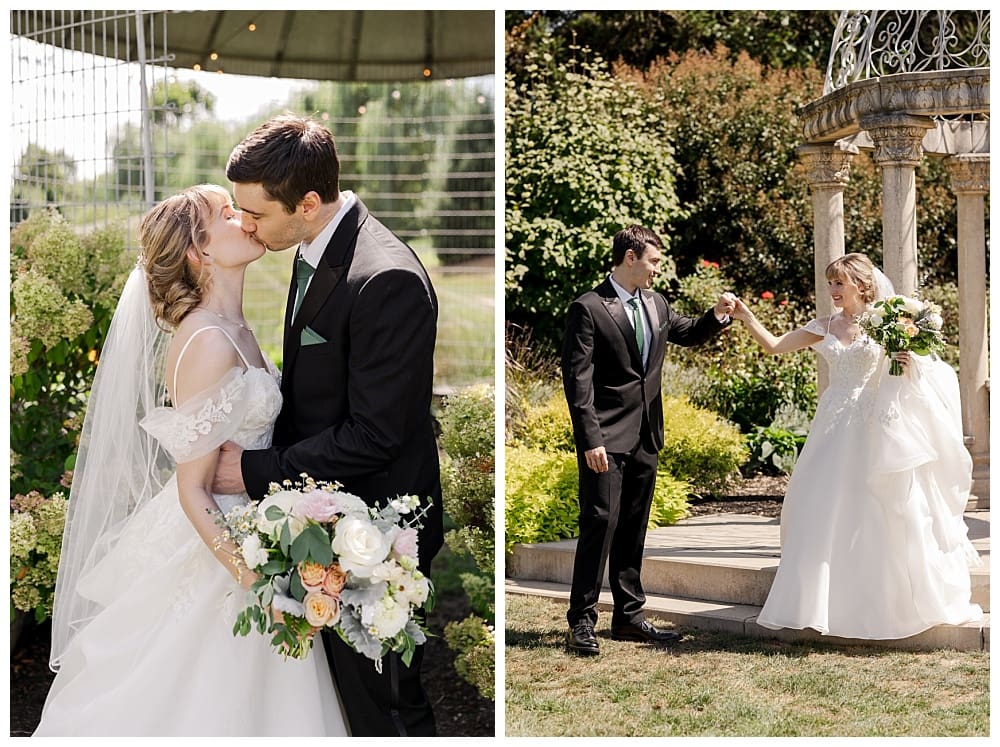 As the day turned to evening, the golden hour arrived, and it did not disappoint. Stoltzfus Homestead and Gardens offers one of the most stunning backdrops when the sun dips low, and Kelsey and Michael looked incredible against it. The portraits on top of the hill were truly to die for with glowing light, wide open skies, and a couple so in love.