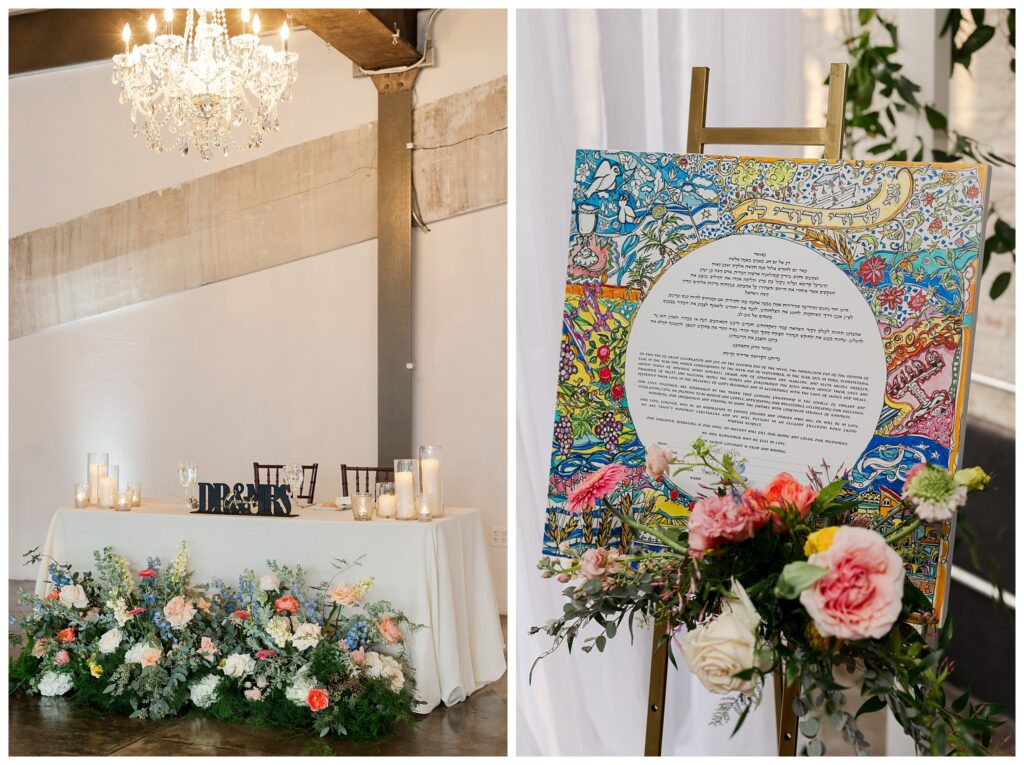 One of the highlights of Aleya and Adam’s Wedding at the Bond was experiencing their Jewish traditions. A particularly special moment was the signing of the Ketubah. Signing the Ketubah is a powerful ritual that marks the beginning of a marriage with intention and meaning. It connects you to centuries of Jewish tradition while reflecting the love and values that are uniquely yours. Watching Aleya and Adam carefully read and sign their Ketubah was emotional and intimate. It was filled with thoughtful words, promises, and blessings, and their families were right there, witnessing this beautiful symbol of love. This ceremony sets the tone for the marriage, highlighting respect, responsibility, and shared values. Later, we watched the glass-breaking tradition, which added a joyful, celebratory energy to the ceremony and reminded everyone of the excitement of their new life together.