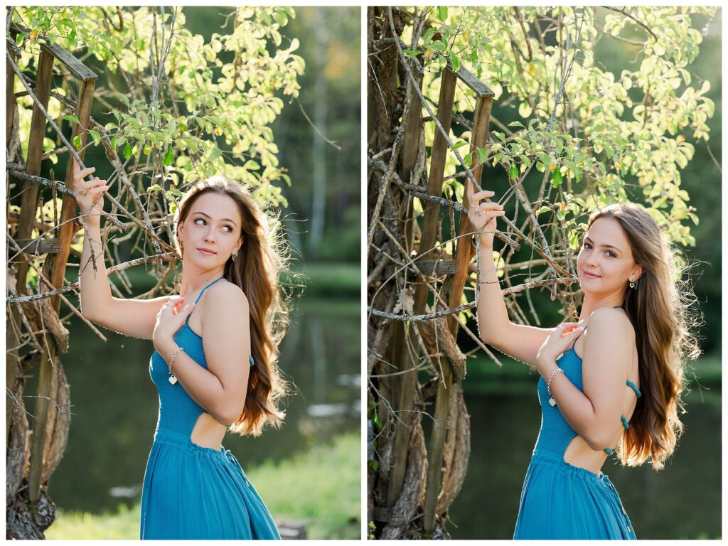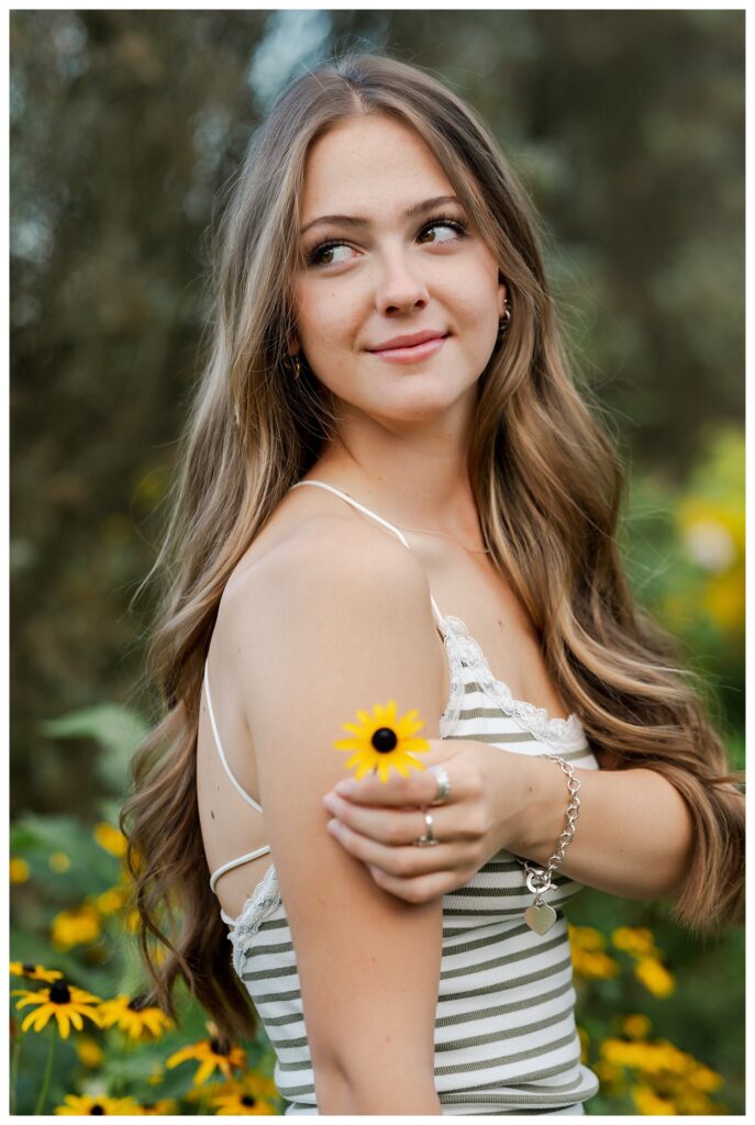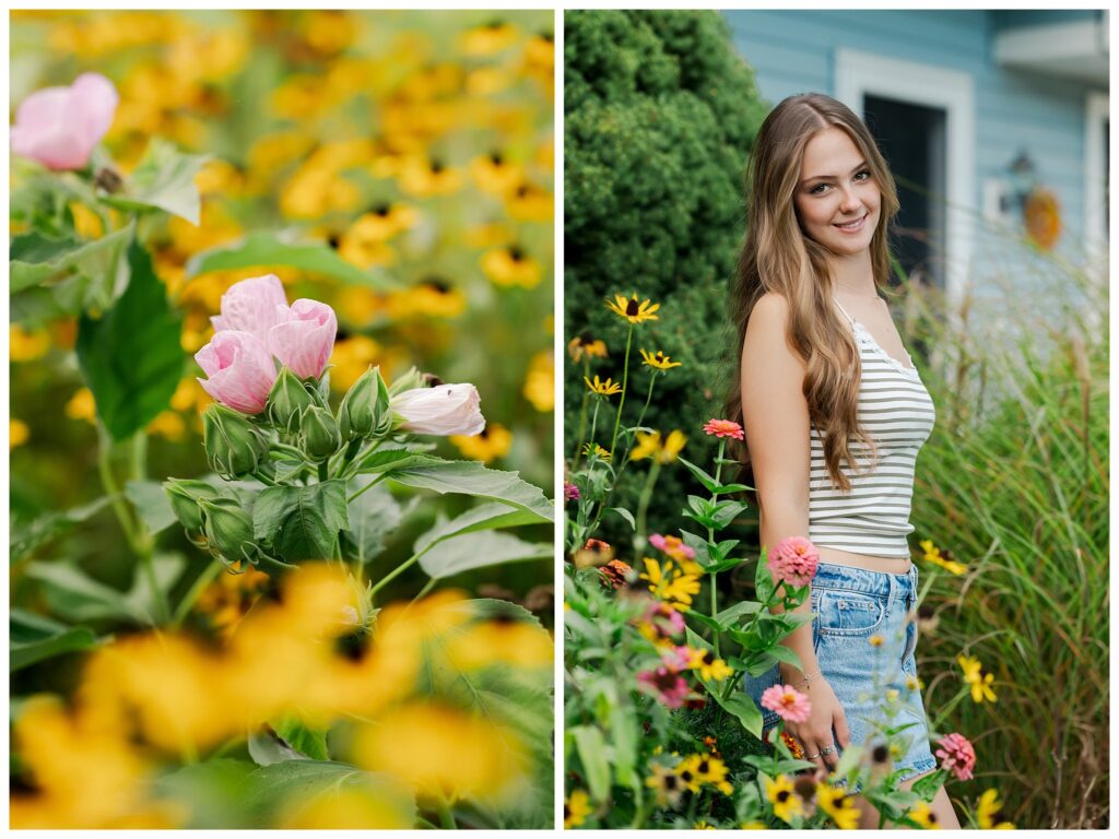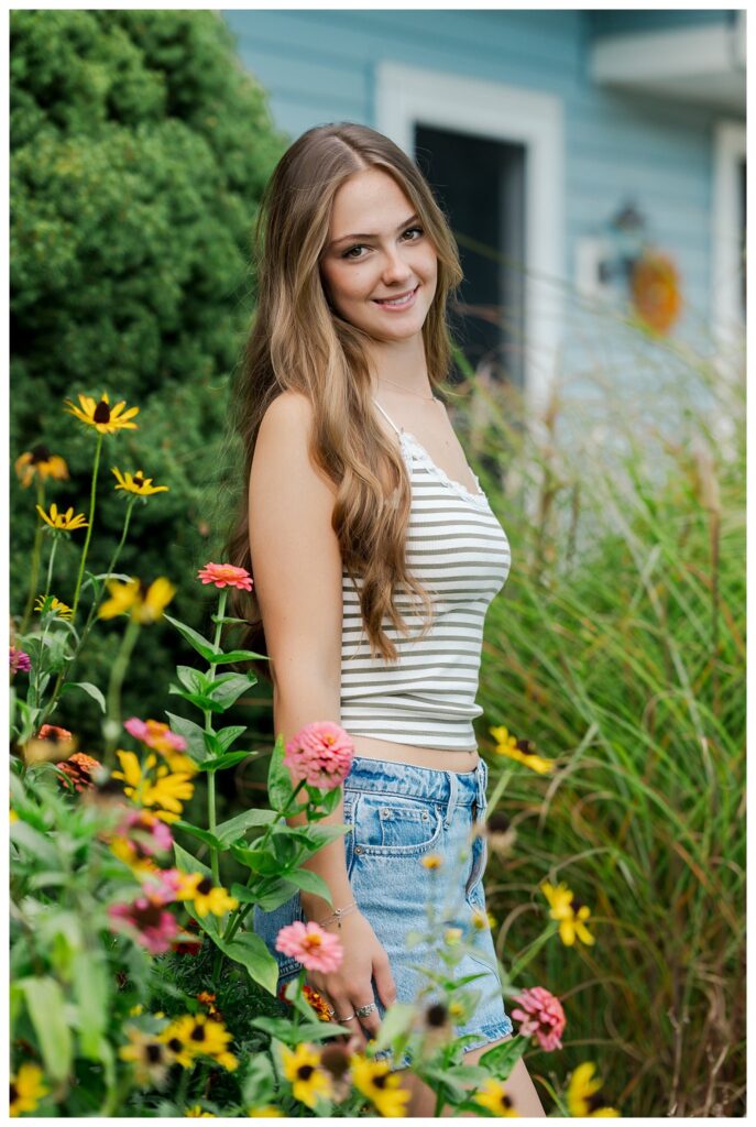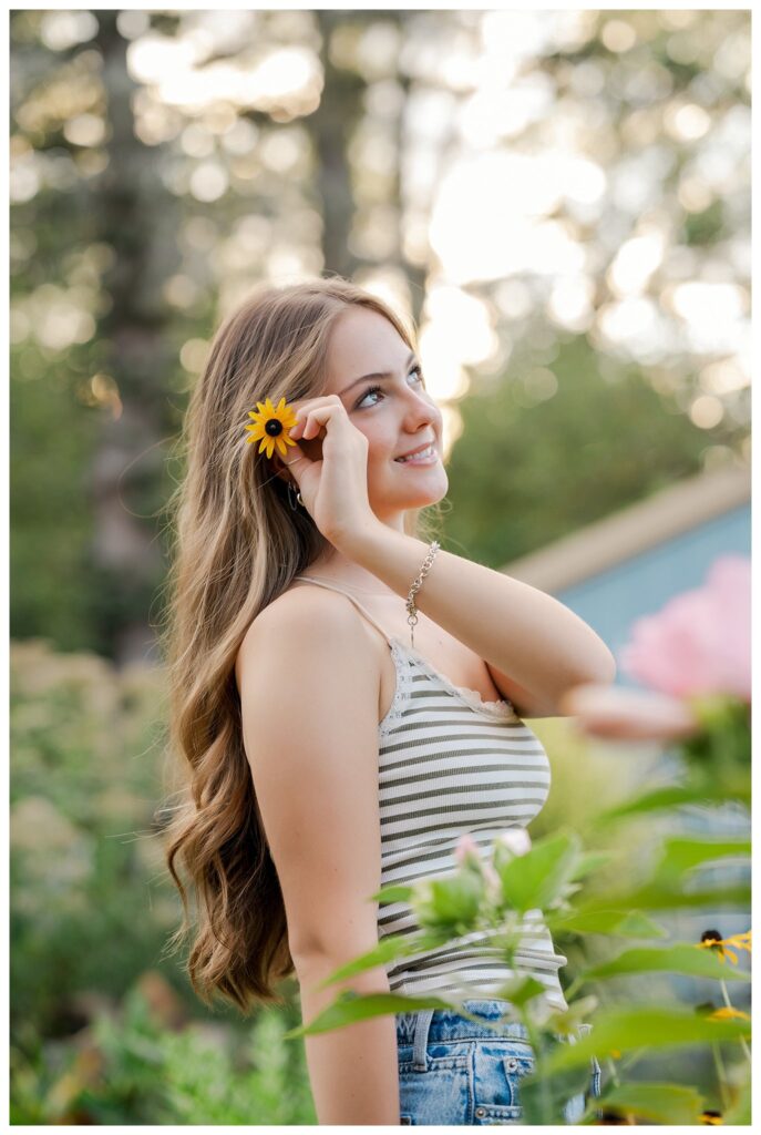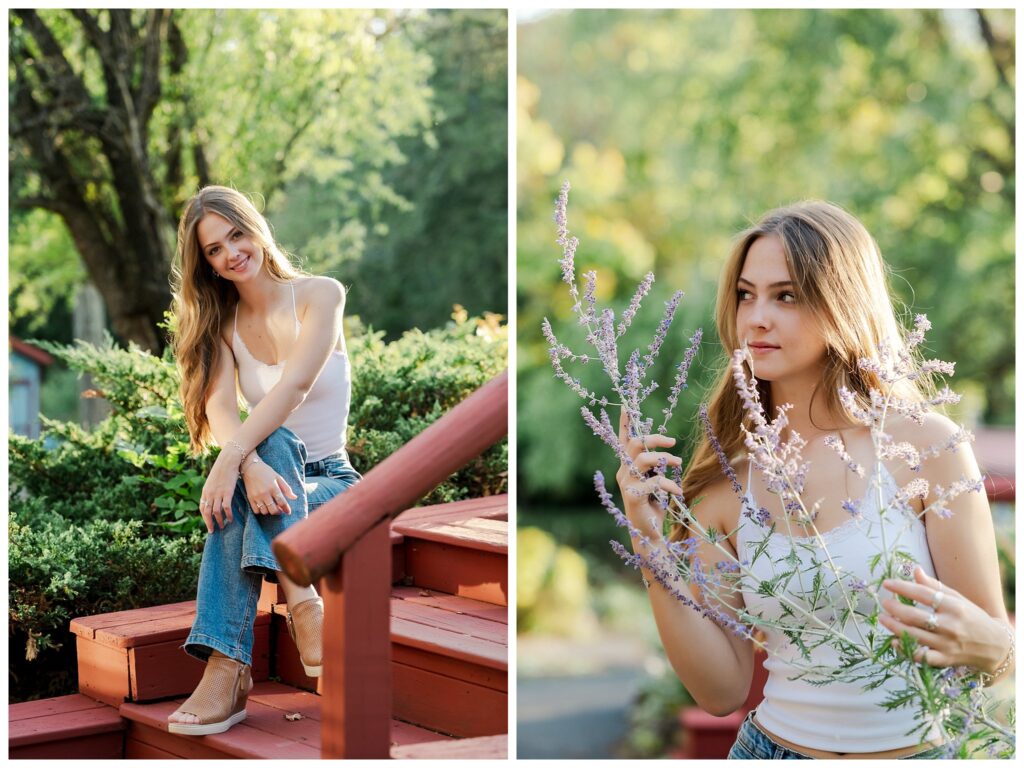After that, we headed to Pheobe’s home. Their back yard was full of gorgeous flowers and landscaping. Toby Creek runs just behind their property, and as the sun began to set, the golden light reflected beautifully across the water. It was the perfect ending to Pheobe’s senior session.
