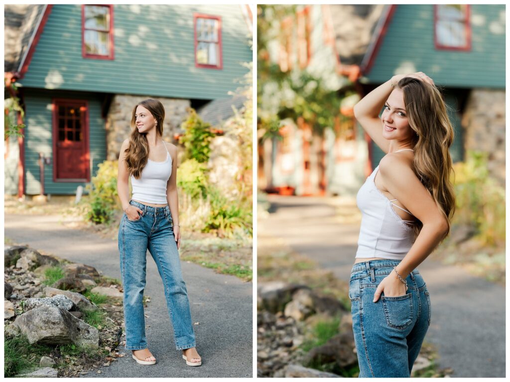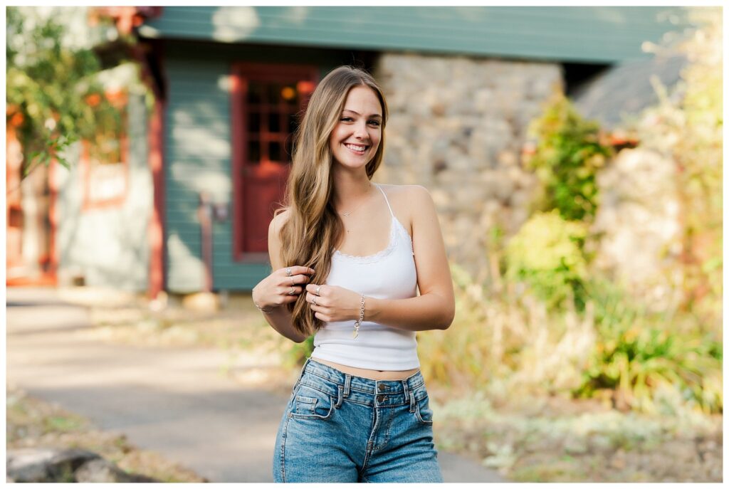 Pheobe’s senior session was absolutely beautiful, unique, and perfectly her. We started at The Barnyard in Brockway, a beautiful family-owned property filled with memories and charm. This property had so many beautiful spots, from the unique exterior of the home to the peaceful pond nearby. It was the perfect place to begin capturing this exciting chapter in Pheobe’s life.