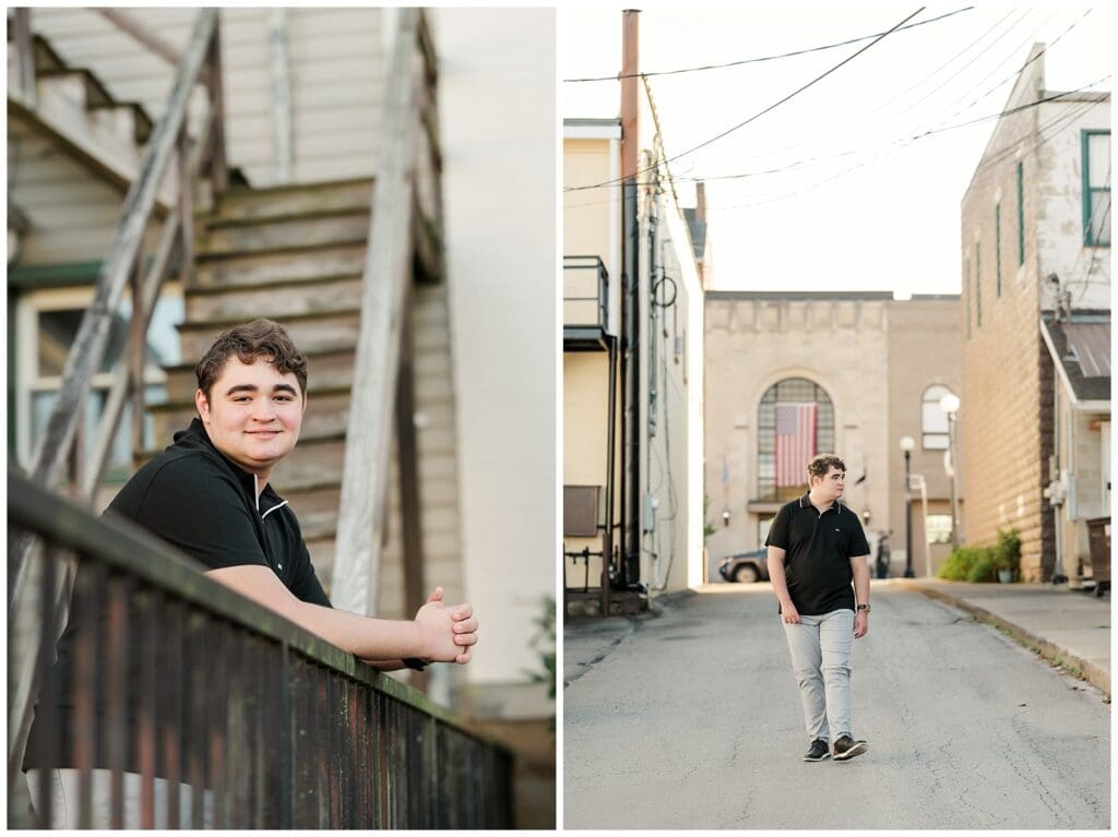 We started his session at Walter Dick Memorial Park. And although the forecast called for rain, the sun was shining and the sky was clear. So we decided to continue his session and headed towards downtown Clarion. But on the drive over, the skies suddenly opened up. And then it rained for days and days! Thankfully, we were able to reschedule and meet up again to finish the second half of his photos. Honestly, it was super fun getting to see him again and pick right back up where we left off.