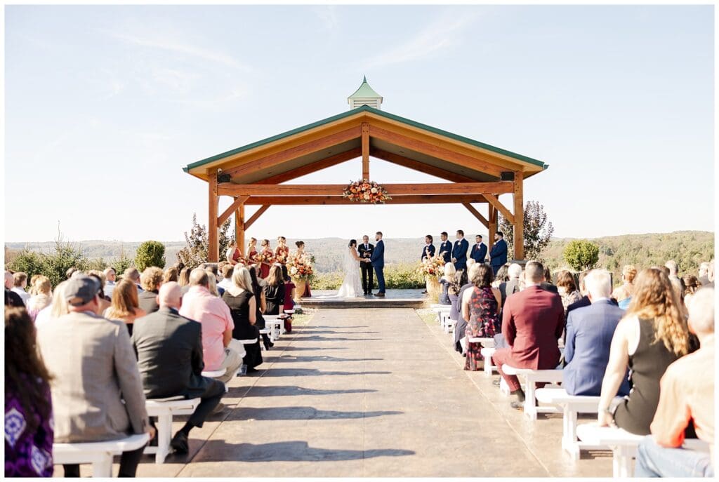 Their ceremony took place outdoors with the Mahaffey mountains stretching out behind them. The weather was perfect, Crisp, clear, and full of that golden autumn glow. Guests could sense the love in every glance and smile between the couple.