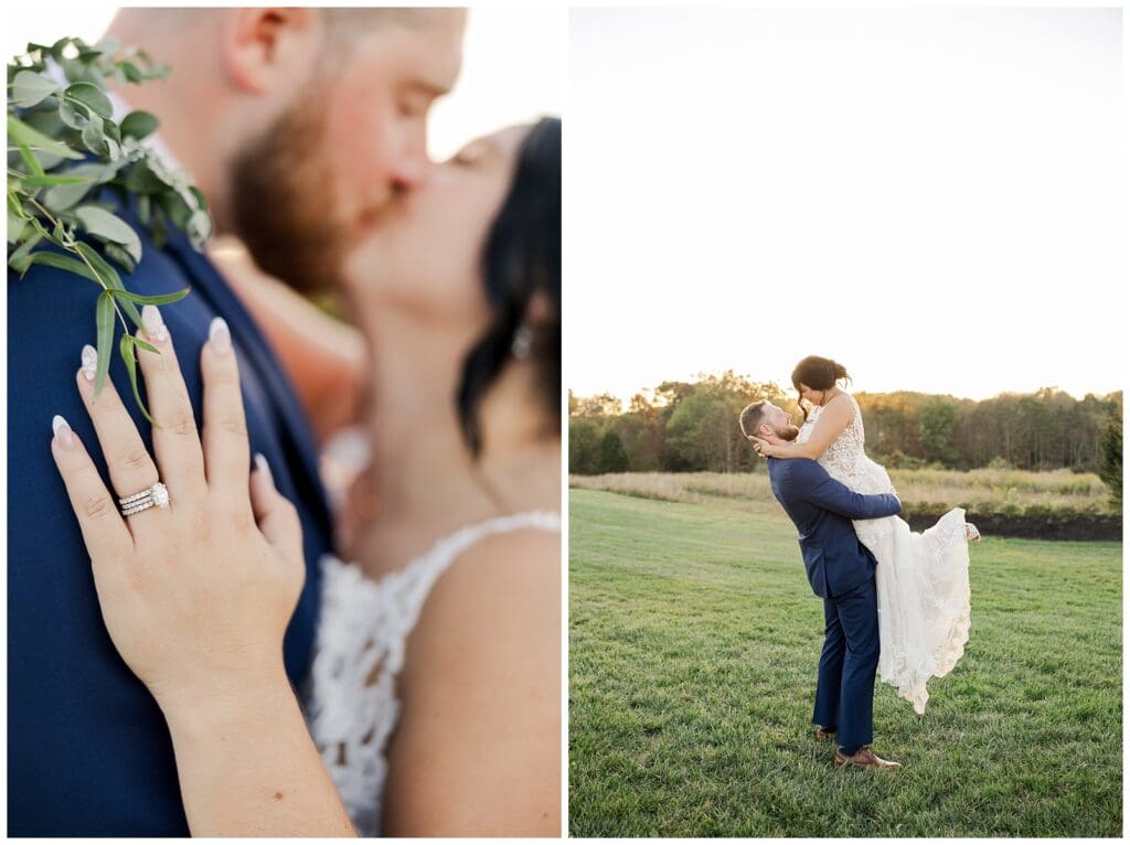 After the ceremony, guests enjoyed cocktail hour while the bridal party shared plenty of laughter and fun during portraits. The group was energetic, supportive, and ready to celebrate their favorite couple. The golden hour at The Roost was, as always, something out of a dream. The sun dipped perfectly behind the mountains, casting a warm glow across the field. It was absolutely beautiful.