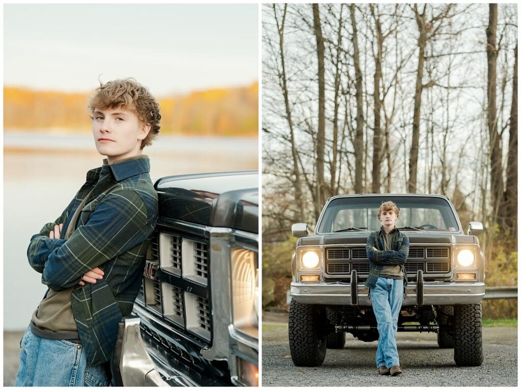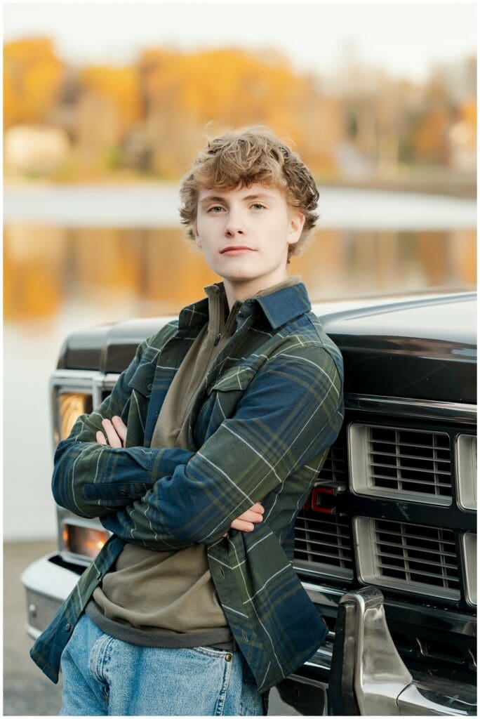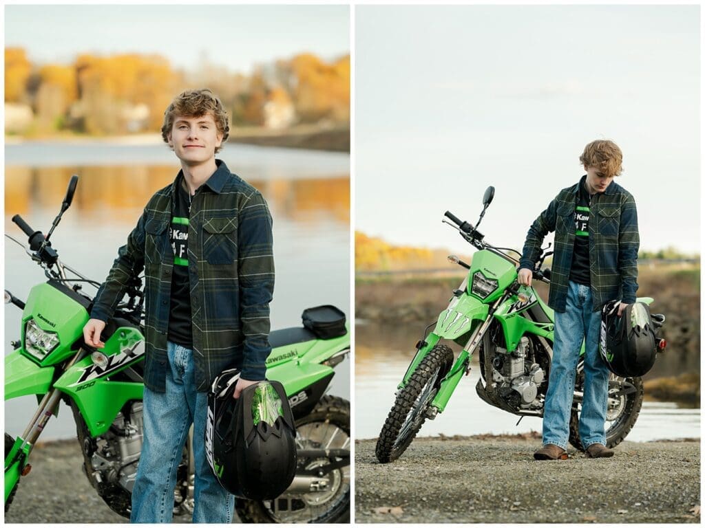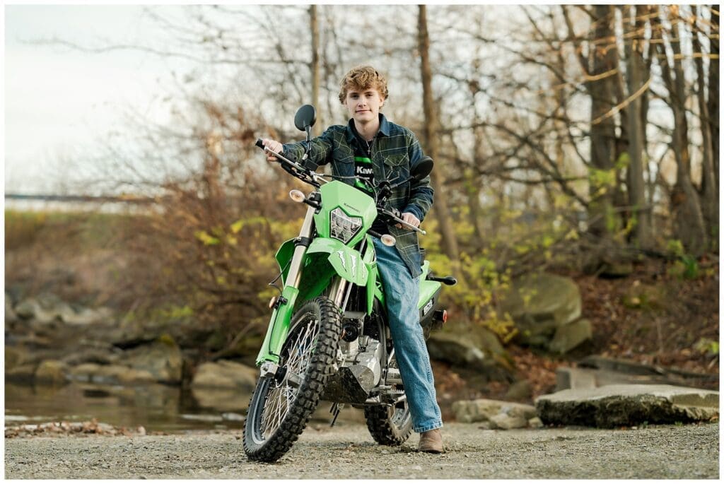 To wrap up Alex’s senior session, we made our way to the boat launch at Bimini Beach. The fall colors were unreal, glowing across the water and giving us the most stunning reflections. The setting was relaxed, adventurous, and full of good memories, especially with his dirt bike and his dad’s old truck nearby.