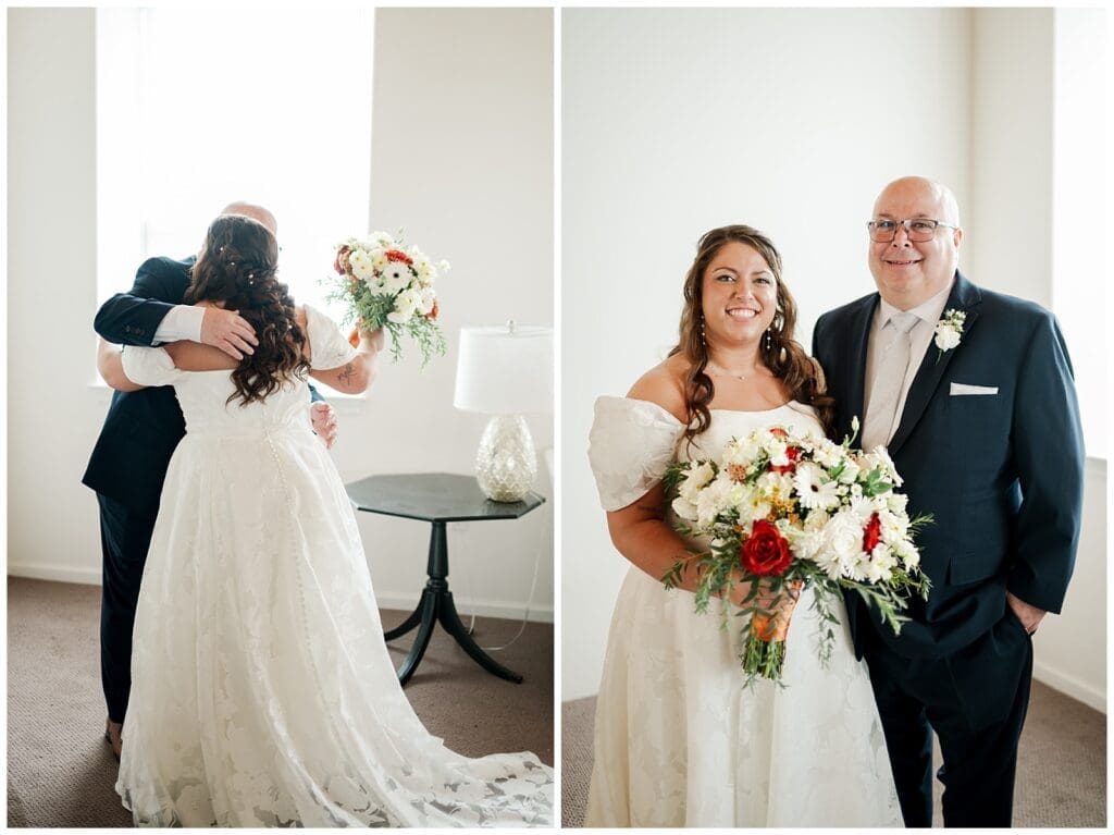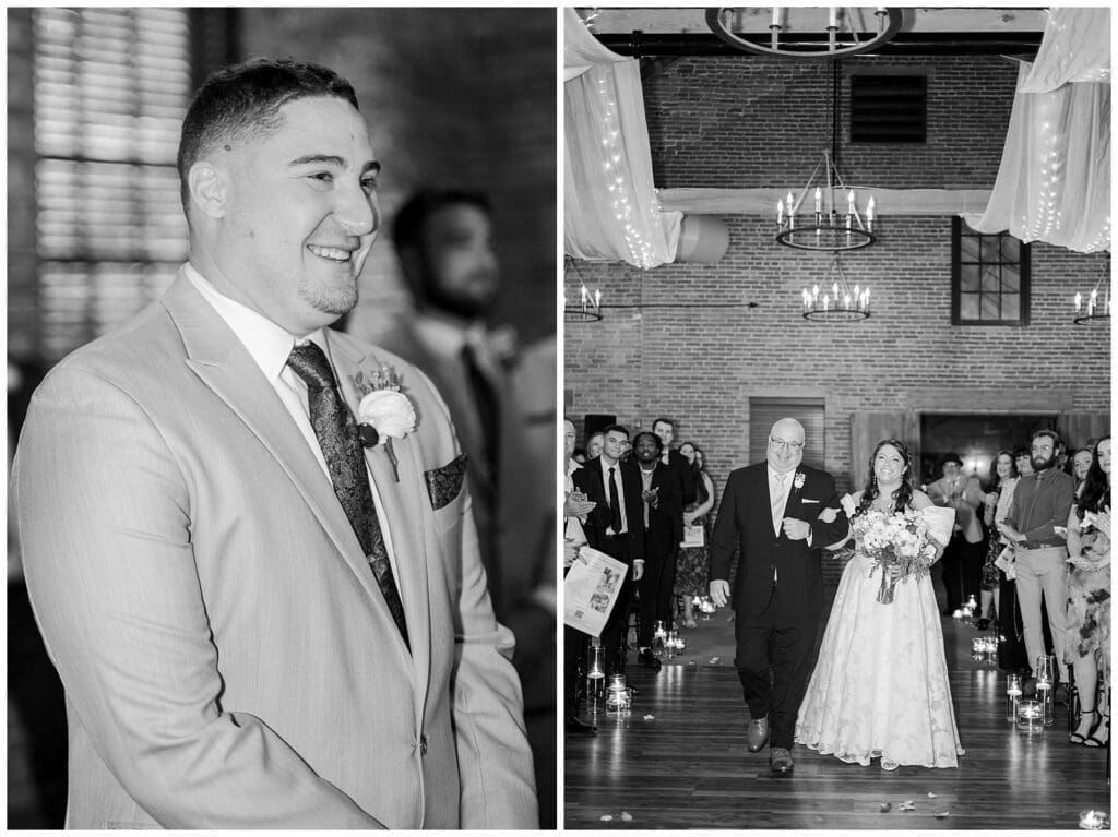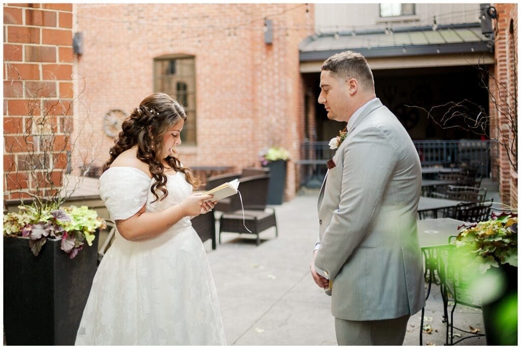 The Cork Factory wedding ceremony was romantic and intimate. You could feel the love in the air as Danielle and Austin exchanged their vows, pouring their hearts out to one another. Their years together, starting in high school, showed in their ease as a couple and the way they were welcomed into each other’s families. It was easy to see how well-loved and supported they are.