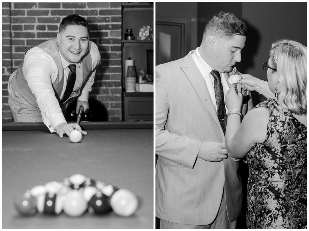 Later, we did a reception reveal, and their amazement at the beautifully decorated space was priceless. The venue’s historic charm, antiques, and thoughtful details made every corner perfect for photos. The table settings, prepared by the couple, were elegant and full of care. The food was delicious, and the staff made everything run smoothly.