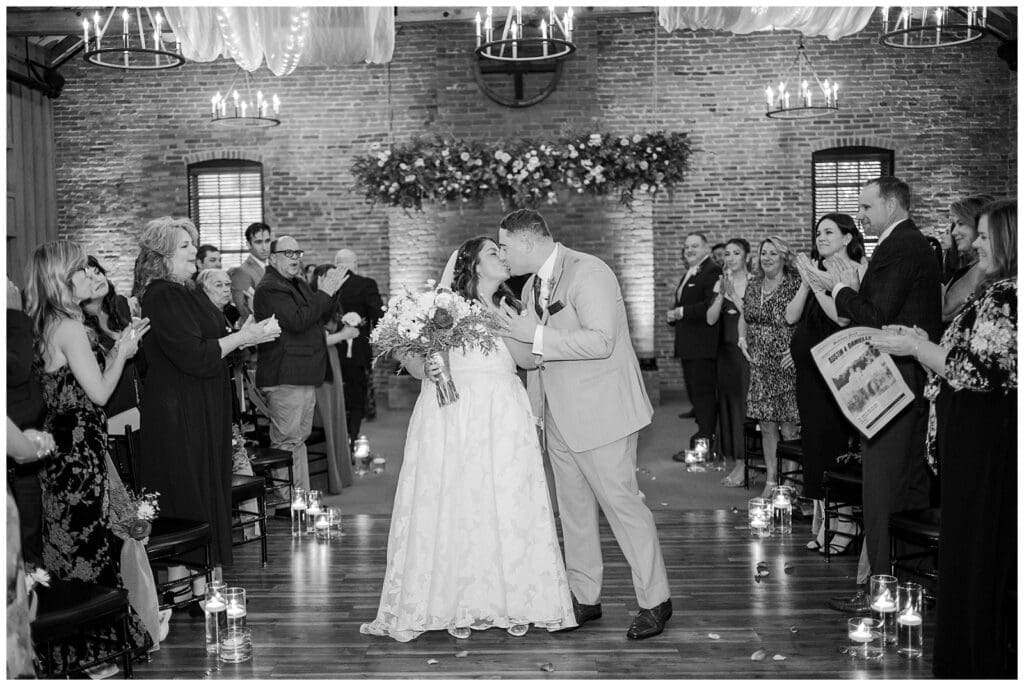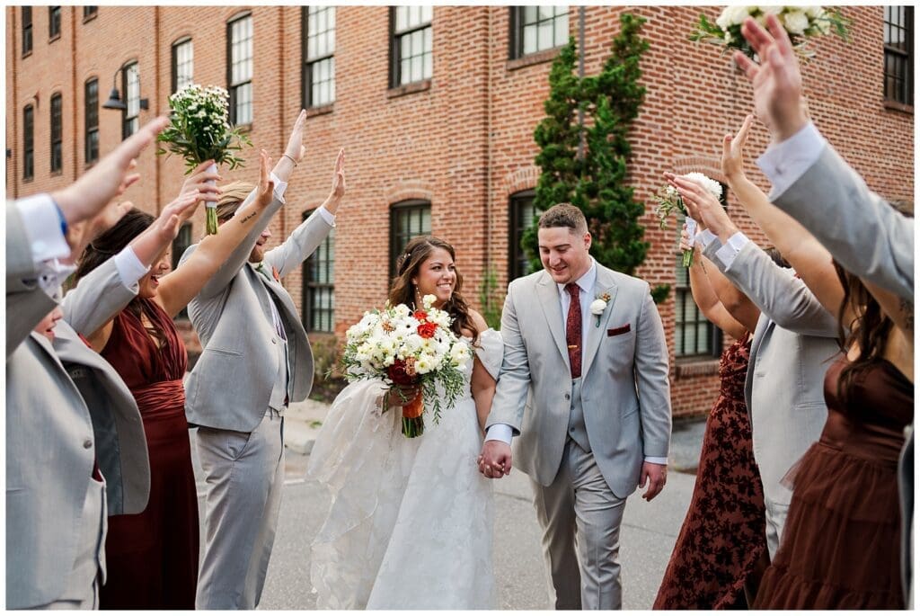 After the ceremony, the couple spent their cocktail hour mingling and enjoying the presence of family and friends. Danielle and Austin didn’t rush. Instead, they savored each conversation, laugh, and hug. This attention to the people around them made their Cork Factory wedding feel personal and genuine.