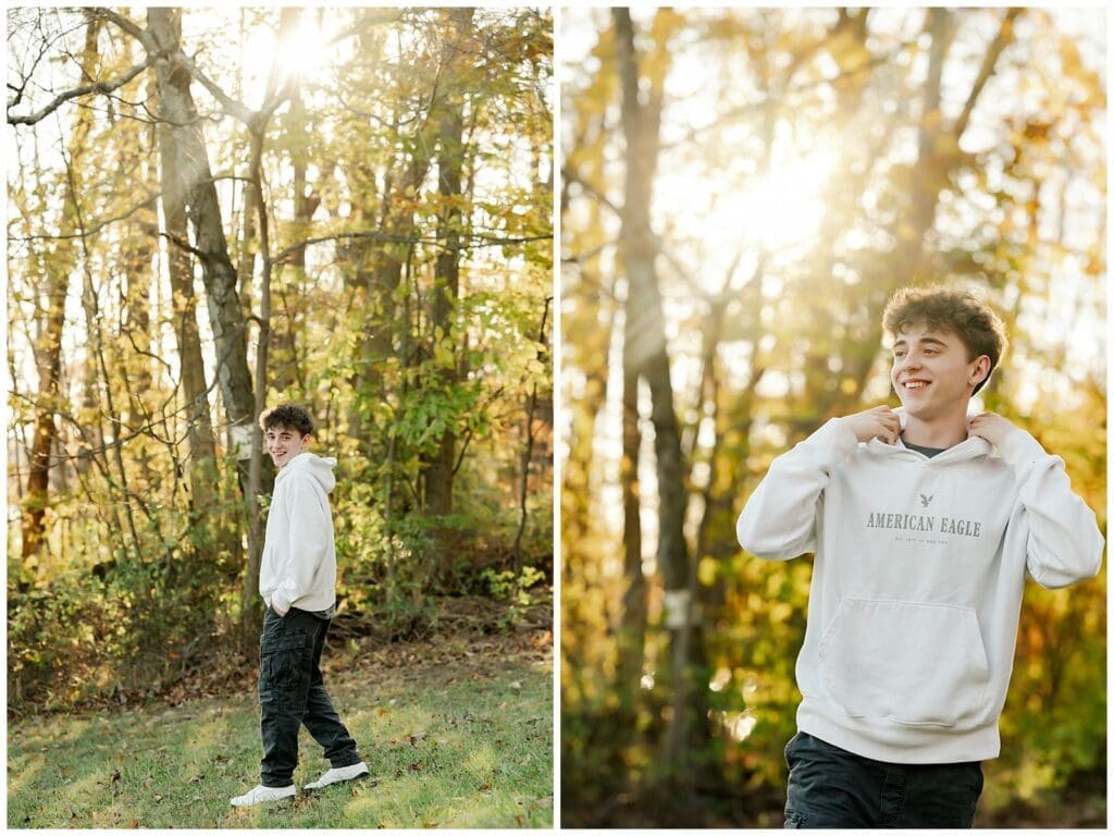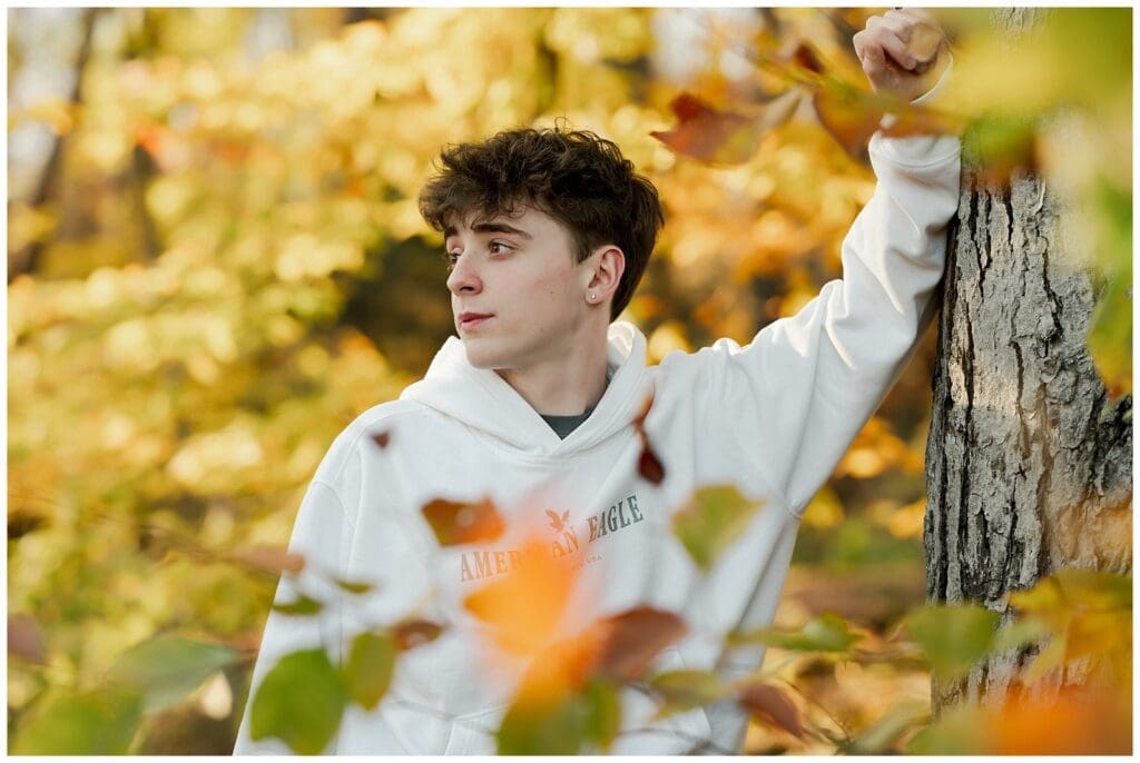 Throughout Dylan’s senior session, he brought an energetic spark. He laughed easily, posed without hesitation, and trusted the process. Because of that, the evening flowed smoothly. The soft light, crisp air, and lingering fall tones all worked together to highlight his personality.
