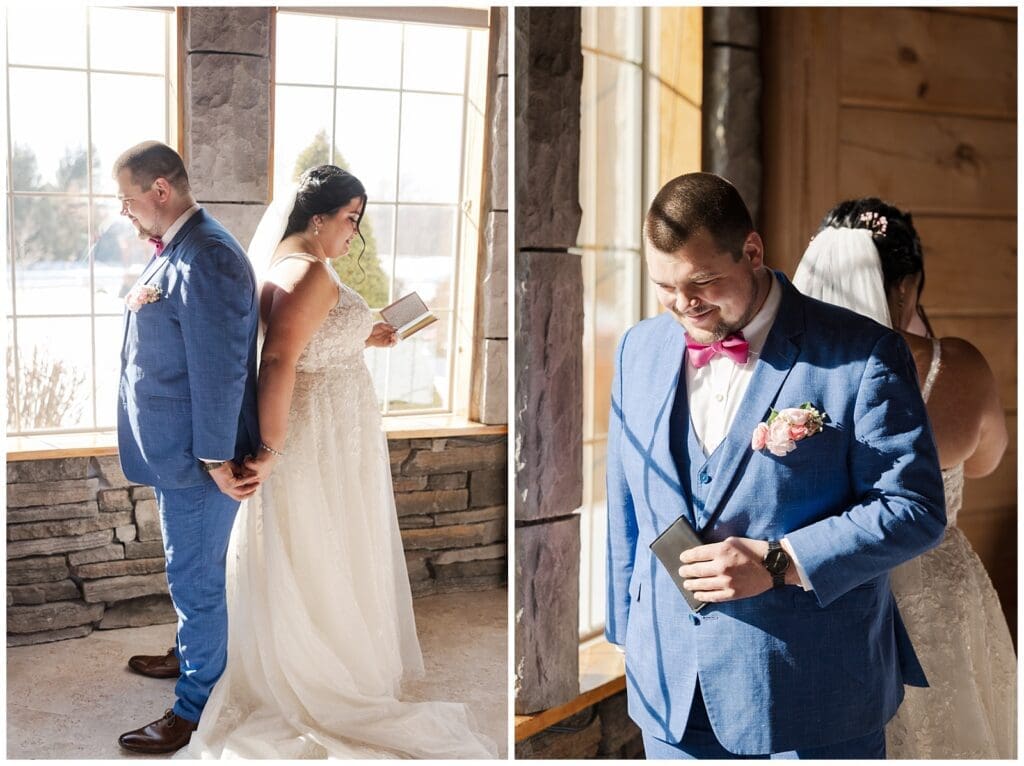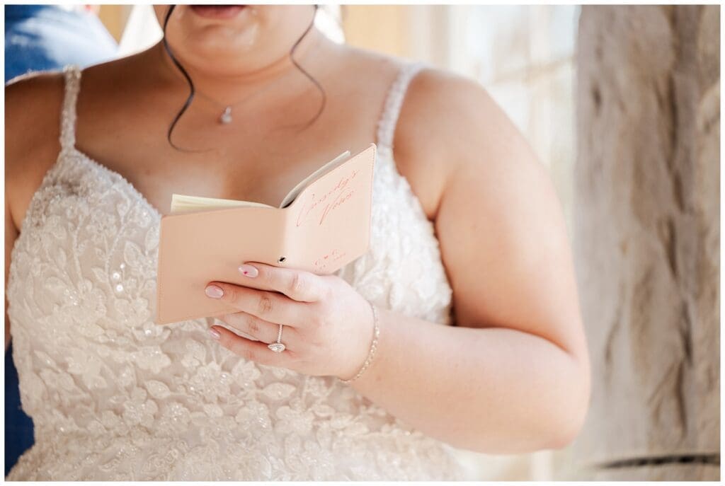 One of the most emotional moments of the day was their first touch. Instead of a traditional first look, they chose to stand back to back. Then, they shared their sweet vows without seeing each other.